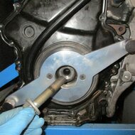 - Blokkeren van de krukas: De houder voorkomt dat de krukas meedraait wanneer de centrale bout van de trillingsdemper wordt losgedraaid of met het juiste moment wordt vastgedraaid.