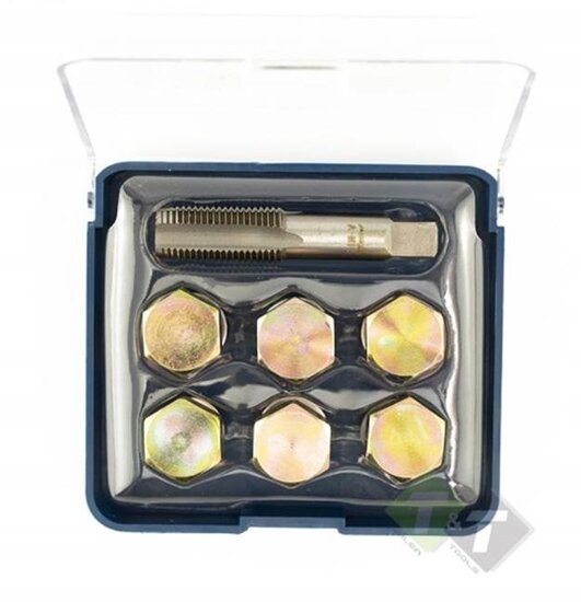 Voor het snel en doeltreffend repareren van ernstig beschadigde olie carter schroefdraad in aluminium oliecarter pannen. 17-delige set voor eenvoudige, snelle en goedkope reparatie van de olieaftapschroefdraad een permanente reparatie wordt gegarandeerd door het uitboren en het gebruik van een grotere olieaftapplug. Universeel inzetbaar voor alle automerken en typen.