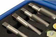 Een 64-delige uitgebreide reparatieset van Trailer and Tools voor de schroefdraad van de carterplug, ontworpen voor het repareren van de schroefdraad van de carter, versnellingsbak en differentiële aftapplug. Bevat M13 tot M20 geschikt voor de meest populaire schroefdraad die wordt gebruikt op auto's en lichte bedrijfsvoertuigen. Gebruik een maat groter om de schroefdraad te repareren en monteer vervolgens een nieuwe aftapplug en sluitring.