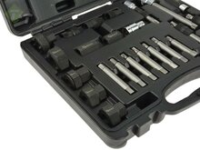 De Geko dynamo montage set bestaat uit 22 hoogwaardige gereedschapsdelen die speciaal zijn ontworpen voor het monteren en demonteren van dynamo’s en vrijlooppoelies bij moderne voertuigen. Deze set is ideaal voor professionele monteurs én doe-het-zelf gebruikers die veilig, snel en nauwkeurig willen werken. In de stevige kunststof opbergkoffer vind je een compleet assortiment adapters, bits en speciale sleutels die noodzakelijk zijn om dynamo’s met vrijlooppoelies correct te servicen. De gereedschappen zijn gemaakt van gehard staal, waardoor ze bestand zijn tegen hoge krachten en intensief gebruik. Dankzij het overzichtelijke en compacte ontwerp van de koffer blijft alles georganiseerd en direct toegankelijk.Kenmerken: