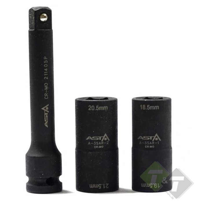 Impact doppenset - 3 delig - Ford Wielmoerdoppen - 1/2 duims aansluiting - ASTA (GERE-08068).