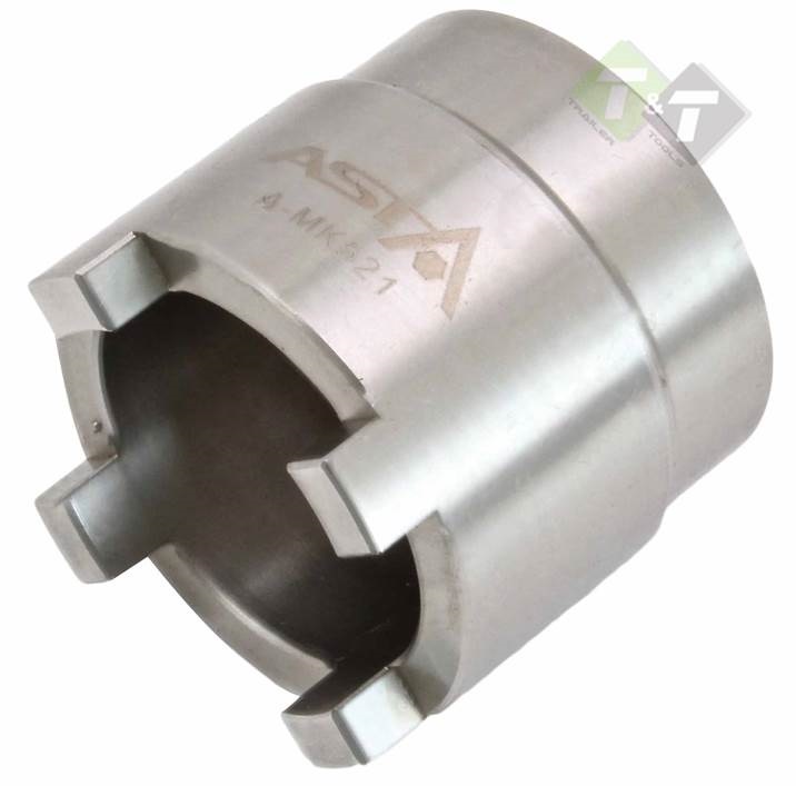 Een Kawasaki swingarm dop, ook wel kroonmoer dop of draaiarm dop genoemd, is een speciaal gereedschap om de kroonmoer van de swingarm op een Kawasaki motorfiets los te maken en vast te zetten. De kroonmoer is de grote moer die de swingarm aan het frame van de motorfiets bevestigt.Deze specifieke dop heeft 4 nokken met afmetingen van 7 x 5,5 mm. Dit betekent dat de nokken van de dop precies passen in de uitsparingen van de kroonmoer. De dop is gemaakt van stevig materiaal, zoals staal of chroom-molybdeen, om bestand te zijn tegen het hoge koppel dat nodig is om de kroonmoer los en vast te zetten.